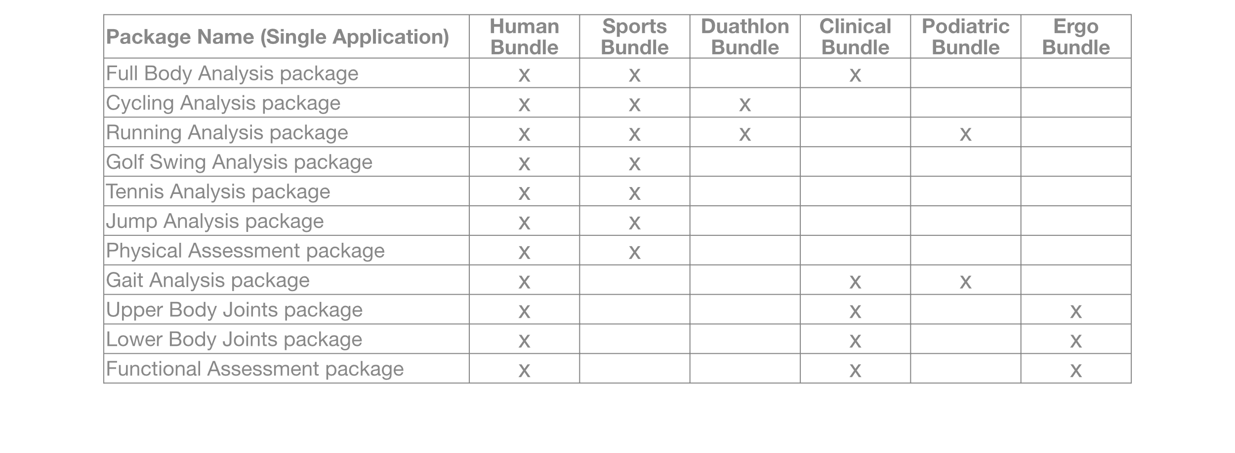 prophysics – Vicon STT Reporting Tabelle Packages